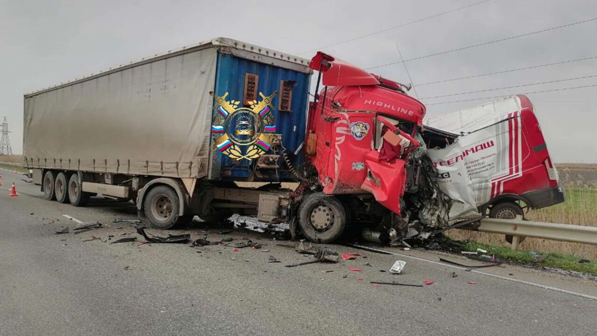 "Водитель автомобиля "Скания" допустил столкновение с движущимся впереди КамАЗом, после чего допустил выезд на полосу встречного движения и столкновение с Ford Transit В результате ДТП водитель автомобиля "Скания" доставлен в ЦРБ, а водитель и пассажир автомобиля Ford погибли на месте", - говорится в сообщении.