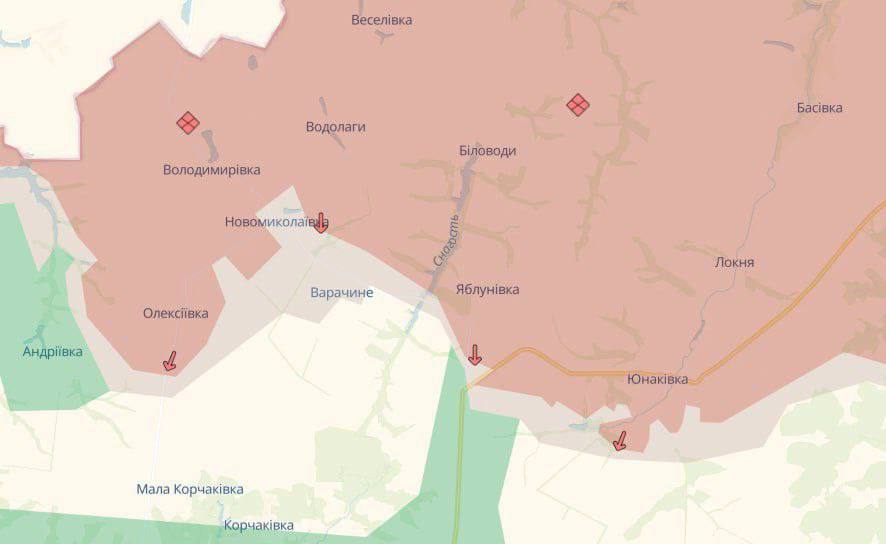 Армия России продвинулась под Николаевкой в Сумской области и пяти селами в Запорожской — Новоивановкой, Охотничье, Малиновкой, Вишневым и в Полтавке, — украинские ресурсы