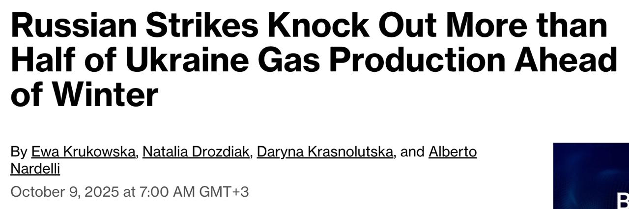 За последние дни РФ уничтожила 60% газодобычи Украины ударами по Харьковской и Полтавской областям, — Bloomberg со ссылкой на источники.