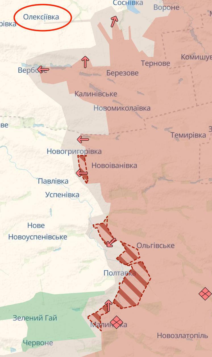 Также у РФ продвижение на пяти участках на западе Запорожской области: около Новоивановки, Охотничьего, Малиновки, Вишневого и в Полтавке.