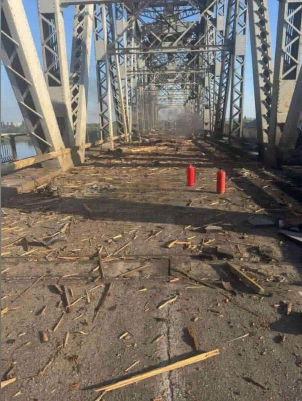 Он используется для железнодорожных и автомобильных перевозок, его уничтожение нарушает цепочки поставок для ВСУ.Судя по всему, по нему попал один дрон, тогда как для обрушения моста необходим массированный удар. Вероятно, это было...